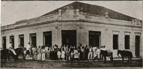 A foto é da década de 20 e o prédio ainda hoje existe, com pequenas alterações. Localiza-se na esquina da Rua Paraná com a Santos Dumont, defronte à praça Rui Barbosa. A foto registra a presença dos proprietários do estabelecimento e dos fregueses presentes na oportunidade.