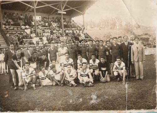 Jacarezinho teve uma das maiores equipes de futebol do Paraná, nas décadas de 40, 50 e início de 60. A foto registra o time de futebol em 1942, antes de uma partida. Nos fundos, parte da arquibancada ainda hoje existente.