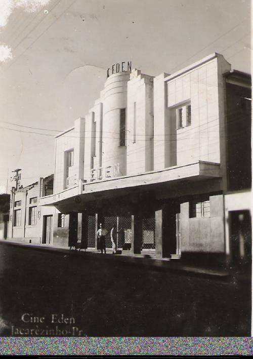 A 2ª fase do Cine Éden teve início em 1948 já que a primeira, com a denominação de Éden Theatro, durou de 1947 até 1948, quando então foi inaugurado esse belíssimo prédio, ainda hoje conservado em suas linhas originais, embora ali funcione atualmente um supermercado. Plácido Bertozzi, proprietário dos dois Édens, era progressista e apaixonado por Jacarezinho, daí porque tudo o que ganhava com o cinema re-investia na cidade. À esquerda da foto vê-se sua residência, hoje demolida e cedendo o espaço para o estacionamento do supermercado. Todos os dias podia se passar defronte a residência de Plácido Bertozzi e ouvir o tilintar das moedas: era ele, conferindo a féria do dia anterior... (TODO SÁBADO ESTE FOTOBLOG É ATUALIZADO COM NOVAS FOTOS).