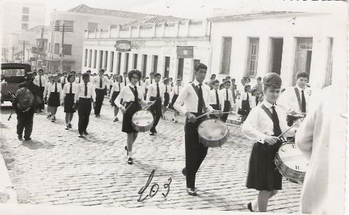 Um dos "três grandes" colégios de Jacarezinho (ao lado da Imaculada Concei~ção e do Cristo Rei0 vê-se nesta foto em primeiro plano a fanfarra do Colégio Rui Barbosa em um desfile da década de 50. À esquerda a figura popular do "Zé Bobo", um dos mais conhecidos e queridos de toda a história desta cidade e que faleceu há pouco mais de 12 anos. À direita o prédio em que funcionou durante vários anos a Casa Chic, da Família Haddad. No local hoje se encontra o edifício do Banco do Brasil. ESTE FOTOBLOG É ATUALIZADO TODO SÁBADO COM NOVAS FOTOS.