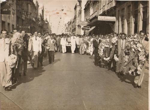 A Associação Esportiva de Jacarezinho foi fundada em 1939 mas logo começou a se projetar no cenário futebolístico do Paraná e do Brasil. Formada apenas por jogadores amadores, a equipe recebia em seu estádio os grandes clubes do Paraná, São Paulo e Rio de Janeiro que dificilmente conseguiam sair vitoriosos. Da mesma forma a Esportiva viajava e numa dessas viagens para Curitiba, em dezembro de 1994 (há 60 anos!), para enfrentar o Britânia, uma fatalidade causou a morte do jogador da Esportiva, Valdomiro Gomes ("Babãozinho") que em uma dividida de bola caiu no chão quebrando o pescoço e tendo morte instantânea. Curitiba e o Paraná vestiram luto. Jacarezinho chorou a morte de seu atleta. No dia seguinte Curitiba parou, o comércio cerrou suas portas e o enterro passou a pé pela rua XV de Novembro até o cemitário ali próximo. Na foto acima, o caixão sendo conduzido por amigos do jogador, colegas de time, diretores da Esportiva e do Britânia. A morte de babãozinho foi profundamente sentida em Jacarezinho e comunicada à população (àquela época ainda sem nenhuma emissora de rádio) pelo Serviço de Auto-Falante de Jacarezinho "A Voz da Cidade" que funcionava no alto do Cine Éden e durante muitos anos foi dirigido por Aldo Bertozzi. ESTE FOTOBLOG É ATUALIZADO TODO SÁBADO.