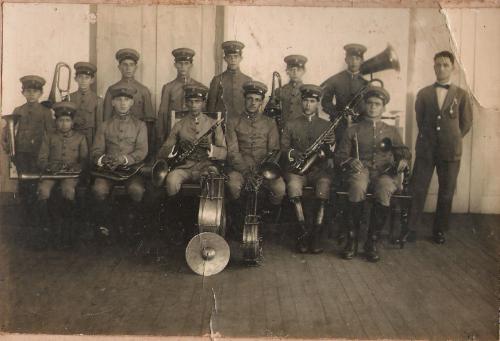 Desde a sua fundação, Jacarezinho teve muitas bandas. Uma das primeiras tinha como regente o Cel. Cecílio Rocha, auxiliado por Egídio Soares. Mais tarde, muitas outras bandas fizeram história em Jacarezinho, animando quermesses, partidas de futebol ou acompanhando procissões. No início elas eram unifomizadas, como a desta foto que data de 1926. Era a denominada Banda Municipal, que tinha como regente o maestro Vogas e que teve disputas históricas com a outra banda da época, a Operária, regida por Francisco Gizzi. Dentre os músicos, o último à direita é Laudelino Alcântara, falecido recentemente. E o penúltimo, também à direita, seu irmão José Agripino Alcântara. Interessante observar o ar militarizado dos integrantes da banda, todos muito sérios. A partir dos anos 40 Jacarezinho teve outra formação musical muito famosa, a conhecida Banda do Ambrósio, integrada principalmente por membros da família de Salvador Ambrósio. ESTE FOTOBLOG É ATUALIZADO TODO SÁBADO.