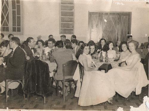 A juventude local viveu intensamente seus momentos dourados. E eles tiveram lugar principalmente no Jacarezinho Clube, entidade fundada em 1939 e que durante muito tempo se constituiu em ponto de reunião da sociedade de Jacarezinho. A foto, do início dos anos 50, mostra um grupo de jovens reunidas no primeiro salão de festas daquele clube, vendo-se na parede dos fundos uma porta ampla que somente era aberta aos encerramentos dos bailes ou em situações de emergência. As jovens são, da esquerda para a direita: Severa Baptista, Regina Martini, Olímpia Aguiar, Terezinha Aguiar e Regina Lisbôa. Na mesa ao lado o então presidente do clube, Tabelião Reynaldo Serra que mais tarde mudou para o Rio de Janeiro onde foi funcionário do IBC e que há poucos anos veio a falecer. Reynaldo Serra como presidente do Jacarezinho Clube ficou famoso por trazer em sua gestão grandes cantores e artistas internacionais vendo-se ao seu lado um deles.