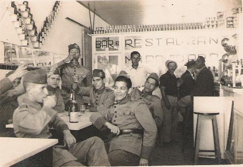 Durante muitos anos funcionou defronte a praça Rui Barbosa (no antigo prédio do Cine Éden) um bar que se tornou famoso e que até hoje é lembrado: Bar Marajoara. Por razões diversas tornou-se difícil encontrarmos uma foto de seu interior, coisa que agora conseguimos graças ao nosso amigo Alarico Rolin (Lalo). Esta foto é do ano de 1953 e mostra os atiradores do TG 185 logo após terem prestado o juramento à Bandeira e que estão comemorando o final de seu tempo no exército. Pode-se observar nos fundos a parede de vidros que separava o salão onde os clientes eram atendidos e a parte de serviços, vendo-se o nome do bar grafado em letras bem grandes: Bar e Restaurante Marajoara. Era esse o bar dos boêmios de Jacarezinho e durante muitos anos atendeu 24 horas por dia, sem fechar suas portas.