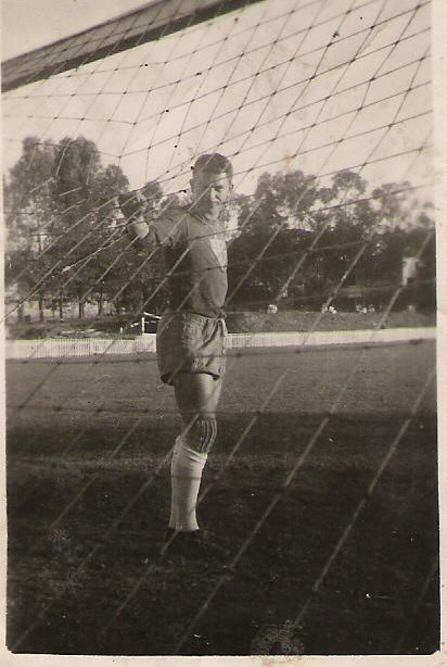 Muca (Levy Baldassari) já foi retratado neste fotoblog como um dos grandes vultos de Jacarezinho. Naquela página, talvez tenha sido falado o essencial. Mas é sempre emocionante rever o inigualável "Muca" em sua atuação dentro dos gramados do Estádio Pedro Villela. Cavalheiro em campo ou fora dele, Muca era o símbolo do futebol bonito e competente, sem malícia ou maldade. Nesta foto Muca, durante uma partida de futebol, olha para trás, numa pose que era a sua característica dentro do gol. O Estádio ainda não tinha alambrados e o campo era isolado por uma frágil cerquinha de madeira, que jamais foi ultrapassada por torcedor algum. Esta foto é do final dos anos 40.