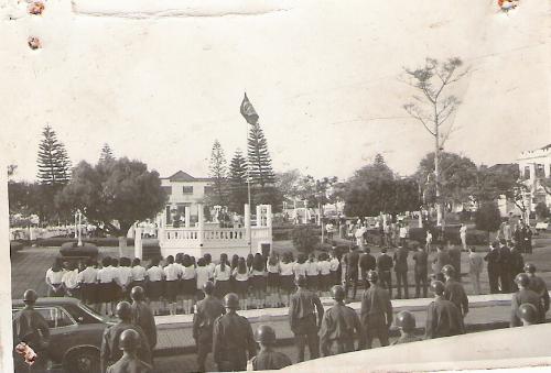 Durante muito tempo a praça Rui Barbosa, coração da cidade e local onde se encontra implantado o "marco zero" do município, foi o cenário de inúmeras solenidades. Discursos, bandas, presença de estudantes, militares e autoridades era uma constante na praça, outrora bem cuidada e com uma imagem sempre muito bonita. Esta foto data de 1974 e mostra um orador discursando para os presentes, dentre os quais alunos do Colégio Rui Barbosa, autoridades e o Tiro de Guerra.