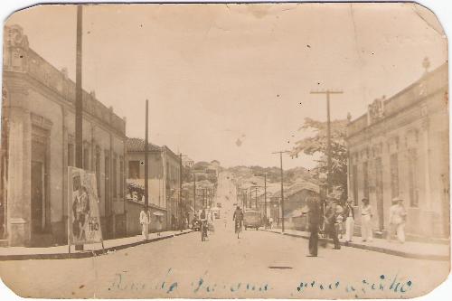 Guilherme: nessa época a rua Paraná (interessante que tanto na frente dessa foto, escrita à tinta, como no verso, está anotado como sendo "Rua do Paraná")ela não tinha calçamento algum e o seu piso era de terra, o chamado "piso batido". Somente no início dos anos 40 é que o calçamento teve início e ainda assim nas duas primeiras quadras apenas. Realmente, o prédio do antigo Imaculada aparece no alto e à sua esquerda, a bonita Capela com sua torre imponente.