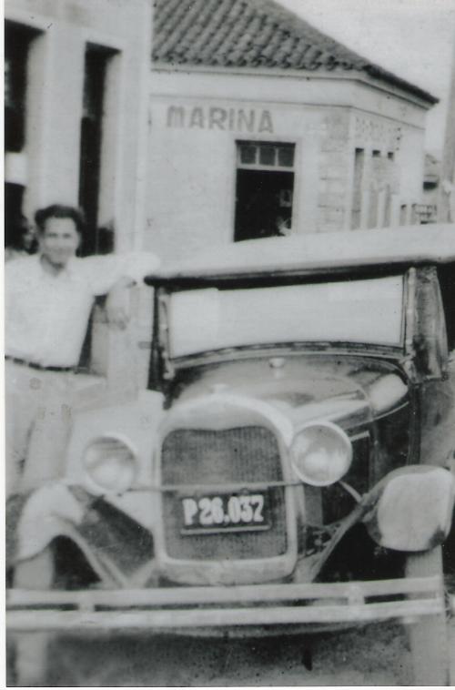 Esta foto, embora aparentemente contenha pouca história, na verdade ela é rica neste particular enos retrata três situações de Jacarezinho. A primeira delas é o comerciante Arnaldo Bardelli, de quem já falamos aqui, que foi delegado, vereador e líder político respeitado nesta cidade, tendo até mesmo uma rua com o seu nome. Arnaldo Bardelli, em foto de 1943 ou 1944, está recostado em seu veículo estacionado no alto da rua Paraná, defronte ao seu estabelecimento comercial, a Casa Carioca, de que só se vê parte dela sendo este o 2º ponto a ser destacado aqui. O 3º e último ponto é o Bar Marina, que se vê ao fundo e que foi um bar que funcionou na esquina da Paraná com a Dr. João Cândido Fortes e que durante todo o tempo em que ali se manteve, embora mudasse de proprietário, sempre mantinha uma curiosidade que atraía todo mundo: no alto de sua parede havia um quadro negro em que eram registrados os resultados das partidas de futebol do Rio e de São Paulo, e atualizados a cada gol que era feito. Em tempos em que não havia televisão nem internet, o quadro-negro era a referência de quem não tinha paciência para ficar ouvindo pelo rádio a transmissão dos jogos... (acervo: Jane Bardelli Malaghini).