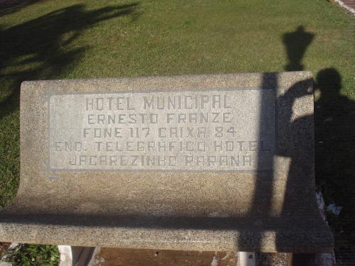 Talvez um dos estabelecimentos que mais mereceu publicação neste site tenha sido o Hotel Municipal, desde fotos da época de sua construção até depois de sua inauguração e ainda flagrantes sociais em seu interior. Inaugurado em 1944 e tendo hospedado até mesmo um Presidente da República (Eurico Gaspar Dutra) o Hotel Municipal desde seus primeiros dias até os anos 80 teve em seu comando o hoteleiro Ernesto Kurt Franze que também participou dessa homenagem à cidade com um banco do hotel que ele cuidava como se fosse seu. Ficaram famosas as visitas que o Sr. Franze fazia no restaurante do hotel em cada mesa, indagando se os hóspedes e visitantes estavam bem atendidos.