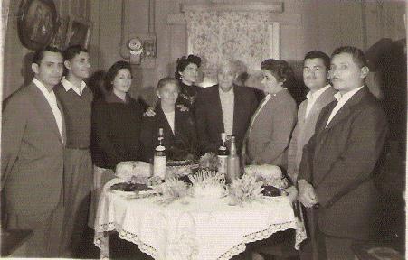 Família das mais antigas de Jacarezinho foi a constituída pelo Sr. Joaquim Junho Cardoso e Dª Dorcelina Lopes Cardoso, unindo dois troncos de famílias tradicionais desta cidade, os Cardosos e os Lopes. Nesta foto, do dia 03 de junho de 1959 os patriarcas comemoravam 48 anos de casados. Estão na foto o casal e seus sete filhos. São eles, da esquerda para a direita: João (fal.), José ("Zino"), Maria ("Lia"), dª Dorcelina, Cândida, Sr. Joaquim, Amélia, Francisco e Lourenço (fal.). A fotografia foi feita na residência do casal, ainda hoje existente na rua Dr. João Cândido Fortes onde mora seu filho José. Em Jacarezinho ainda residem muitos dos descendentes do casal Joaquim-Dorcelina, inclusive dois filhos meus e que são bisnetos do casal, netos de Maria (Lia). (Acervo Maria Tereza Alves Ferreira ("Zoca").