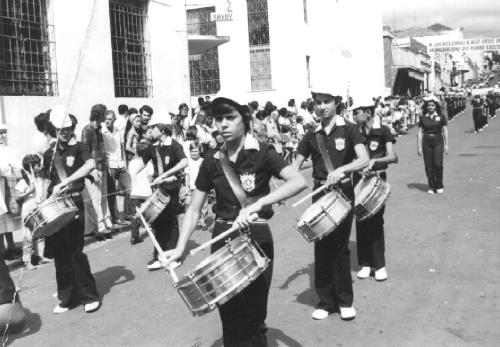 Os alunos que desfilam no dia 7 de setembro de 1972 formavam a fanfarra do Colégio Cristo Rei, com seu uniforme diferenciado. Dos alunos tem-se, em primeiro plano Jussara Mandes Dias (hoje cirurgiã-dentista em S.A.Platina) e ao seu lado direito, com a cabeça voltada para a esquerda, Paulo Rossito (a quem pertence a foto e que reside atualmente em Curitiba). Atrás de Jussara, Márcio Gentil, professor de piano e de inglês em Jacarezinho. A foto foi intermediada por Milton Malaghini.