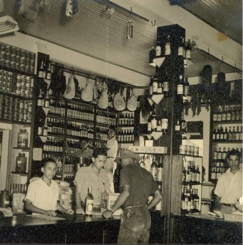 Esta foto provavelmente é datada da década de 50 pois sobre o balcão existe um produto que fez muito sucesso na época: Biscoitos Aymoré (em lata). É uma casa comercial típica daqueles tempos, com bebidas, latarias, conservas em geral. Não foi possível identificar de quem era e onde ficava esta firma mas ela era de Jacarezinho pois pertence ao acervo de Benedito Moreira que gostava de registrar para seu arquivo pessoal fatos, acontecimentos e situações da cidade e de amigos. A quantidade de mercadorias no pequeno espaço que se vê dá bem uma idéia do movimento que com certeza a empresa possuía. (Foto cedida por sua filha Sandra Moreira).