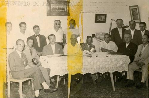 Houve um tempo no Brasil (de 1946 a 1964) que a filiação de uma pessoa em um partido político era definitiva: raramente alguém mudava de partido, cada um deles tendo bem definido seu programa e sua ideologia. Um desses partidos, muito forte nos anos 50 e 60, foi o Partido Social Democrático -PSD- que, muitas vezes aliado com o Partido Trabalhista Brasileiro -PTB- formava uma aliança quase que imbatível. Em Jacarezinho o PSD era comandado pelo grande líder local Benedito Moreira que reunia constantemente seus integrantes. Nesta foto (embora tenha um defeito no centro, amarelado mas importante pelo seu valor histórico) mostra líderes do PSD local e também da comunidade. São eles, da esquerda para a direita, de pé: José Cher, Waldomiro Leite de Moraes (provavelmente), Thomaz Aimone, Antonio Rosa Abeche ("Muque"), Moacir Correa (provavelmente), Salviano Berthier Fortes, (???) e Ulysses da Silva Costa. Sentados: Theotônio Rolim, (???), João Batista Valadão, Benedito Moreira, (???), Oscar Thompson Filho (mais tarde Ministro da Agricultura no Governo Castello Branco), José Fontes de Noronha e (???). Foto do acervo de Benedito Moreira cedida por sua filha Sandra Moreira.