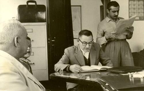 Nesta foto, possivelmente do último mandato (1959-1963) como prefeito de Jacarezinho de Benedito Moreira vê-se o prefeito à esquerda ouvindo atentamente a leitura provavelmente de uma ata, pelo seu auxiliar Alberto Foggiato Filho (fal.). De pé, o funcionário Pedro Jorge Chueiri lé o que parece ser o Diário Oficial. A foto foi feita no gabinete do prefeito e faz parte do acervo de Benedito Moreira, tendo sido cedida pela sua filha Sandra Moreira.