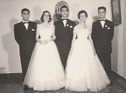 Aos 17 ou 18 anos, alunos da antiga Escola Técnica de Comércio D. Fernando Tadei reunem-se momentos antes de comparecerem a um baile "a rigor" (para os homens, permitia-se terno preto ou branco...) que seria realizado nos antigos salões do Jacarezinho Clube. Época de glamour, de cabelos assentados com brilhantina, de vestidos longos, de sorrisos sinceros e de amizades sólidas o grupo que se vê na foto {da esquerda para a direita, Luiz Chardulo, Lucy Campos, Jorge Rahuan, Rachel Frank Lobo e Celso Rossi (eu...)} mantém até hoje a mesma amizade daqueles tempos. A foto foi feita na residência de Lucy, na rua Paraná, ao lado de onde hoje se localiza a Cisnorpi.