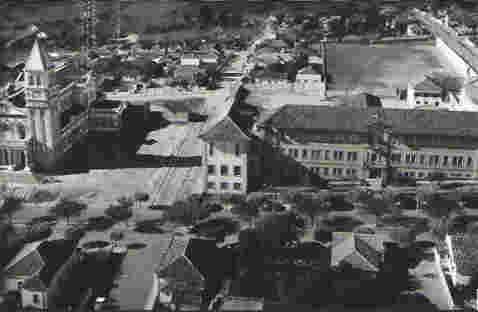 Esta foto mostra uma imagem privilegiada: em 1º lugar, à esquerda, a Catedral concluída e imponente. Do lado oposto, o Colégio Cristo Rei. E entre eles, a rua Coronel Alcântara cujo calçamento chegava apenas até a esquina da avenida Getúlio Vargas.
