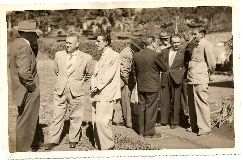 Em local não identificado, algumas personalidades locais conversam, possivelmente aguardando a chegada de alguém ou alguma solenidade. Dentre elas, à direita da foto, de pé (o mais alto) Scyllas César Peixoto (Barão), tendo ao seu lado Benedito Moreira, bem jovem ainda e que tem a sua frente Levy Taborda (de costas). Provavelmente esta foto é da época em que Levy Taborda foi prefeito de Jacarezinho, em 1947 (Esta foto pertence ao acervo de Benedito Moreira e nos foi cedida pela sua filha Sandra Moreira Souza).
