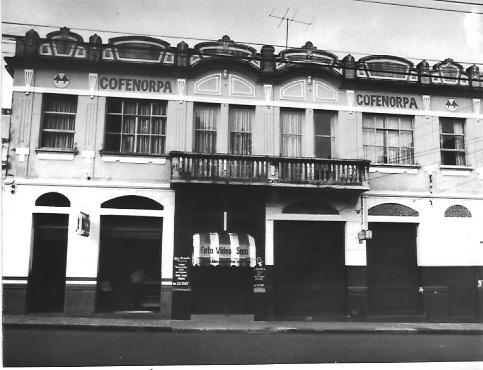 Já no dia 8.10.2004 foi publicada aqui uma foto desse mesmo prédio, só que aquela era datada de 1946 e esta da década de 80. Comparando uma e outra é possível observar que nos seus 40 anos este imóvel sofreu transformações, principalmente em suas janelas do alto e o fechamento da porta à sua direita, hoje já reaberta. Na época desta foto funcionava no prédio a sede da COFENORPA, uma cooperativa de cafeicultores que hoje também não existe mais. O prédio praticamente pouca transformação tem sofrido e situado na praça Rui Barbosa, a mais importante da cidade, destaca-se pela sua linha arquitetônica.