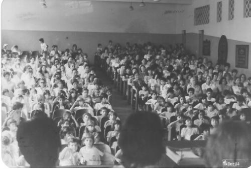 Em dezembro de 1981 o Colégio Cristo Rei realizou sua tradicional festa de encerramento do ano letivo com a formatura dos concluintes dos antigos 1º e 2º graus, hoje ensino Fundamental e Médio. A foto mostra o Salão Nobre daquele estabelecimento totalmente tomado por alunos e familiares.
