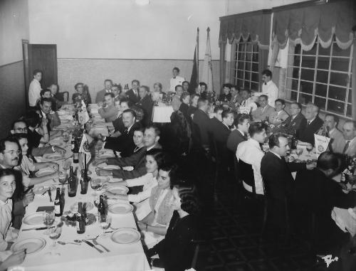 É costume ficar na "mesa principal", na realidade é a mesa diretiva dos trabalhos o presidente do clube e os convidados e visitantes. Revendo o meu arquivo de Rotary, na seção de Galeria dos Ex-Presidentes, essa foto provavelmente deve ser do ano de 1949/50, foi quando o compº Anézio de Almeida Leite assumiu a presidência naquele ano rotário.
