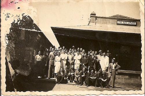 Esta foto, datada de 13 de outubro de 1937 (70 anos, portanto) registra os quintoanistas da Faculdade de Medicina da Universidade Federal do Paraná por ocasião de sua visita a Jacarezinho. O meio de transporte na época era o trem e eles posaram ao lado da estação ferroviária identificada ao alto, em um bonito momento de suas vidas e que mostra a então bem cuidada estação de Jacarezinho. No verso da foto encontra-se o nome de cada um deles. À esquerda, parece ser o trem que os conduziria de volta para a capital do Estado. No centro da foto, ainda bem jovem (30 anos) mas já um grande líder, de terno branco e braços cruzados, B. Moreira, identificado no verso como "presidente honorário da Caravana do 5º ano ao norte". (Esta foto pertence ao acervo de Benedito Moreira e nos foi cedida por sua filha Sandra Moreira Souza).