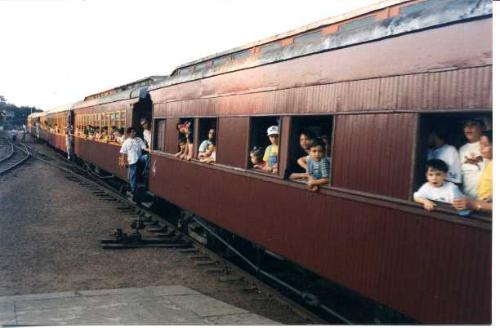 A antiga estrada de ferro da RVPSC (Rede Viação Paraná-Santa Catarina) foi impulsionadora do progresso e do desenvolvimento de muitas cidades do interior do Brasil, inclusive de Jacarezinho. Quanta gente viajou de trem desta cidade para Curitiba, principalmente! Desativada há muitos anos e atualmente administrada pela A.L.L. (América Latina Logística) a estrada de ferro e as estações encontram-se em estado de total abandono. Em Jacarezinho havia um ex-ferroviário (João Mendes de Oliveira, conhecido como João Caubói, pessoa idealista e apaixonada pelas ferrovias, falecido muito jovem neste ano) que criou uma entidade de preservação da rede ferroviária. Com isto ele pôde proporcionar há 10 anos atrás aproximadamente uma viagem de turismo com a antiga Maria Fumaça puxando os vagões de Jacarezinho até a estação da Platina repleto de escolares e convidados. A foto é desse passeio. (Acervo: Prefeitura Municipal de Jacarezinho; intermediação do vereador Vicentinho).