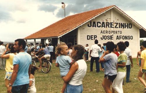 A pista com extensão superior a 1.500 m ainda se encontra em perfeito estado de uso mas o problema diz respeito às construções que foram feitas, autorizadas pelo Poder Público Municipal à época, e que tomaram a chamada área "non edificandi", ou seja, área com edificações proibidas. Os proprietários, que depois construíram no terreno, não podem ser considerados culpados uma vez que a responsabilidade foi da Prefeitura em lhes passar os terrenos sob a forma de comodato e depois autorizar a construção. Mas o que se vê nesta página era a pequena estação de passageiros do aeroporto com o nome do Deputado José Afonso nele afixado. Muitas pessoas ao lado da estação demonstra que alguém importante estava chegando ou partindo. Jacarezinho, que chegou a ter vôos diários para Curitiba (2), São Paulo e Londrina, hoje amarga por ter perdido o seu importante aeroporto. (Acervo: Marcos Ferreira).
