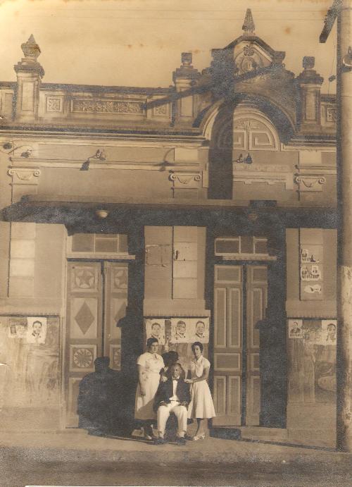 Na página do dia 19 de outubro de 2004 foi publicada uma foto atual do prédio barroco construído por José Bertho, primeiro morador da Vila Setti, localizado na avenida Dr. João de Aguiar. Ali historiamos em rápidas palavras a sua vida e a sua importância para o desenvolvimento daquele que foi o primeiro bairro de Jacarezinho. Aquela foto mostra o prédio (como se encontra atualmente) construído em 1930 pelo próprio José Bertho que, embora bastante humilde e simples, era um autodidata em matéria de arquitetura. Confrontando-se esta foto com aquela outra é que se pode perceber as transformações sofridas pelo imóvel, verdadeira jóia da arquitetura local, merecendo tombamento histórico e a sua reconstituição. Nesta foto vê-se José Bertho sentado tendo ao seu lado duas noras, Cacilda (casada com Joaquim) e Luci (casada com Raul). A propaganda política afixada na parede da casa divulga o nome do candidato a governador nas eleições de 1950, José Munhoz de Mello, tudo indicando então que a foto é daqueles tempos. Vale observar que as duas portas, de madeira, são diferentes uma da outra, existindo ainda uma terceira porta, não alcançada pela objetiva da máquina que fotografou o prédio na época. Como curiosidade é interessante observar que as duas fotos, embora mais de 50 anos separem uma da outra, parecem ter sido batidas no mesmo horário do dia, o que é possível perceber-se pela sombra do poste, no mesmo lugar. (Acervo: Família Bertho).