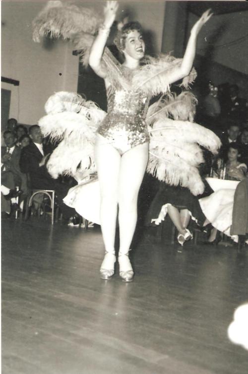 No local onde funcionara o antigo Cine Éden, em prédio ainda hoje existente na praça Rui Barbosa, o Jacarezinho Clube para lá foi transferido enquanto realizava suas obras de ampliação. Terminadas estas, o local continuou a ser mais uma entidade social, a partir daí então com a denominação de Clube Marajoara. São raras as fotos dessa época. Esta foto foi feita no Clube Marajoara em 1956, oportunidade em que se apresentava a cantora e bailarina Conchita Mascarenhas. (Acervo, Dr. Elmo Ferreira).