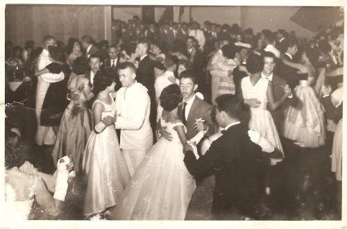 Este baile deve ser da formatura da primeira turma da Faculdade de Filosofia de Jacarezinho. Deve ser 1961 ou 62. Em primeiro plano, de terno escuro, estou dançando com a minha irmã Rosicler, que era formanda.