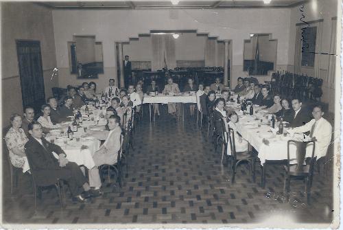 Em imagem provavelmente da década de 50, vê-se um grupo de personalidades locais reunidas em um jantar no antigo salão do Jacarezinho Clube (onde hoje é restaurante). Dentre os identificados, à esquerda de frente para a câmera, João Cardoso da Silva, de tradicional família local. O 4º, à esquerda, é o empresário Raimundo Madureira e em seguida sua filha Neusa. Ainda à esquerda, o primeiro do outro lado da mesa é Jofre Elias, figura lendária da cidade. O 6º é o bancário Leônidas Bertozzi. No final, entre os dois lados da mesa o empresário e radialista Aldo Bertozzi. À direita, na fila próxima à parede, a 4ª é a grande professora dª Detinha; o empresário Teófilo Innocêncio é o 6º. Do lado oposto o 4º é o empresário e depois advogado Moysés José Pedro e em seguida sua esposa dª Lisota. À exceção de dª Lisota, atualmente residente em Curitiba, todos os demais aqui identificados são falecidos. (Acervo: Vitor Francisco Camargo Carvalho; intermediação de Luiz Paulo Larcher).