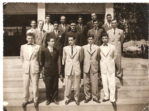 O lendário Colégio Cristo Rei que fez história no ensino e na educação do Paraná e de São Paulo, em 1953 viu concluir sua 1ª turma do Curso Científico, equivalente hoje ao Ensino Médio. No início seguinte, realizado vestibular sem cursinho ou coisa que o valha, a quase totalidade deles foi aprovada. Esta foto é do dia 05 de dezembro daquele ano, feita uma semana antes da formatura. Estão nelas, na fila do alto da esquerda para a direita: prof. Éros Benedetti (fal. - também advogado e poeta); Celso Antônio Rossi, aprovado no mês seguinte em Direito na Federal do Paraná; Prof. Geraldo Melo Santos (fal.). Tibiriçá Botelho Filho (fal.) aprovado em janeiro em Direito na USP; Raimundo Silveira Fontes, aprovado em Odonto no mês seguinte; Américo Brochado (fal.), aprovado um ano após em Direito na USP. Na fila do meio, Fernando Andretta, aprovado em odonto; Alcides Pedro de Souza (fal.), aprovado em janeiro, em Direito na Federal do Paraná; Padre Romano Merten, fal.; Francisco Carnielli (fal.) aprovado em farmácia no ano seguinte; José Codato, aprovado em engenharia no mês seguinte pela USP. Na fila de baixo, André Noronha, aprovado em Medicina na Universidade da Bahia; João Ferreira de Melo; Antônio Batista de Souza, aprovado em odonto; Edeval Azevedo, aprovado em Direito na Federal do Paraná; e Luiz Carlos Pereira, aprovado em Medicina na USP. A aprovação no vestibular desses alunos pouco mais de um mês depois da conclusão do curso, comprova a qualidade de ensino do Colégio, mais ainda quando se verifica as Universidades em que obtiveram esse resultado.