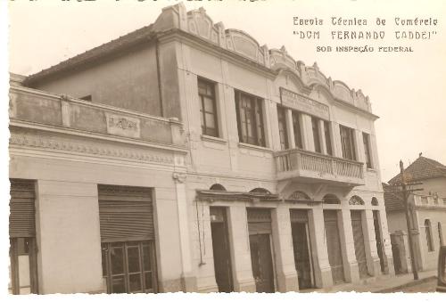 Nas páginas do dia 8 de outubro de 2004 foram publicadas duas fotos das instalações da Escola Técnica de Comércio Dom Fernando Taddei, com todo o seu histórico. Numa delas vê-se a fachada do prédio em que a partir de 1944 e até 1948 funcionou a escola, no sobrado talvez mais bonito de Jacarezinho e que ainda hoje existe. Na imagem de agora, o prédio na mesma época (1946), fotografado de outro ângulo sendo possível ver parte do Hotel Paulista, na ala de um único pavimento.