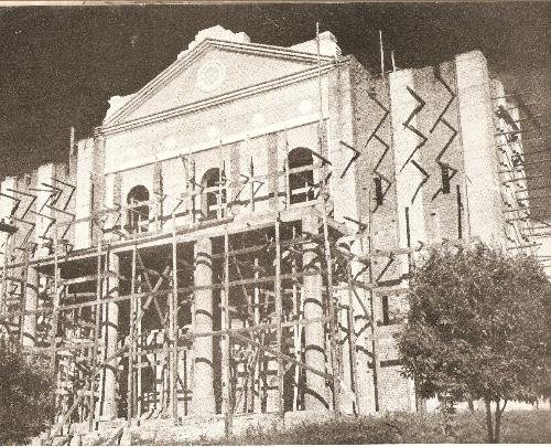 A imagem acima mostra a frente da Catedral Diocesana de Jacarezinho no ano de 1948, quando ainda em construção, podendo ser observado que as duas torres ainda não haviam sido erguidas (foto extraída da revista Pioneira, de Londrina).