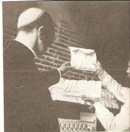 O joem bispo D. Geraldo, em visita às obras da Catedral, em meados de 1949, observa um dos artísticos ornatos que ainda hoje embelezam o templo religioso. Dedicado e operoso, D. Geraldo marcou época na história de Jacarezinho. (Foto extraída da revista Pioneira, de Londrina, edição nº 05, de outubro de 1949).