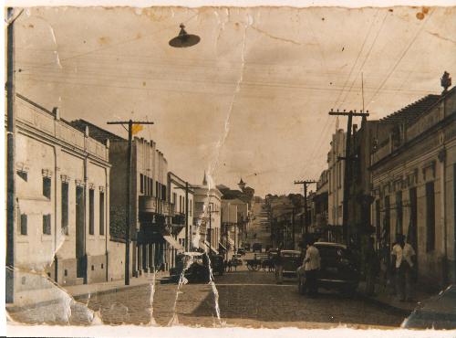 Embora a foto esteja danificada, a imagem que ela mostra é importante: as duas primeiras quadras da rua Paraná, depois da praça Rui Barbosa, com as construções antigas e que em 1950 ainda predominavam. À esquerda, o primeiro prédio, residência da Família Abu-Jamra anexa à casa de comércio, transformou-se em portas comerciais. Na sequência o sobrado em que funcionou a Relojoaria Suissa, Real, etc, ainda resiste ao tempo. Em seguida o sobrado mais antigo do norte do Paraná e que sofreu alteração na primeira parte, onde era o bar do Tripotti com a sacada ao alto. Ali mais tarde funcionou o Laboratório Diniz já com essa parte totalmente alterada. O mesmo prédio, na sequência, não sofreu mudança. O imóvel seguinte foi demolido recentemente e era onde funcionada ultimamente o Bar do Jaimen, e antes a loja A Nacional, Bar do Jorge, etc. O prédio seguinte, Café do Norte, também foi demolido e erguido um edifício de 4 pavimentos onde funcionou no térreo a agência do Bamerindus. Atravessando a rua a sede local do Banco do Estado do Paraná, demolida e eeguida outra. À direita, a única transformação foi com relação ao 1º imóvel, que transformou a entrada residencial da Família Melco em portas comerciais.