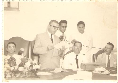 Eleito em 1955 e empossado como prefeito no ano seguinte, Cássio Arantes Pereira é diplomado no antigo Fórum local. A imagem é daquela ocasião quando o então escrivão eleitoral Levy de Andrade Azevedo lê a ata da diplomação tendo à sua direita o Juiz Aran Machado e à esquerda, sentado e de terno branco, o prefeito eleito Cássio Arantes Pereira que por sua vez tem ao seu lado o então vereador e futuro prefeito Nelson Gomes de Oliveira ("Careca") recentemente falecido. Em pé, com o microfone na mão o radialista Hélio e ao seu lado o assessor da Câmara Clodoaldo Moreira Dias ("Dadinho") mais tarde Juiz de Direito. Com exceção do radialista, a respeito de quem não se tem notícias, todos os demais são falecidos.
