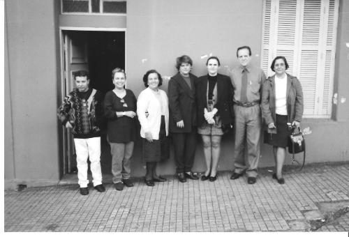 Quando Jacarezinho se preparava para comemorar o seu 100º aniversário de emancipação política (em 02 de abril de 2000) o então prefeito Mário Clóvis Gaspar nomeou uma comissão com a incumbência de organzar os festejos. Uma das promoções da Comissão foi fazer uma eleição popular que escolheu o símbolo de Jacarezinho e que recaiu na Catedral Diocesana. A Comissão pleiteou também a aquisição de um imóvel (o que se vê parcialmente na foto) para implantação do Museu Histórico, que infelizmente não pôde ser concretizada pelo fato de o Município não possuir recursos para tanto. A casa, que mais tarde veio a ser demolida, por si só já era um monumento histórico pois fora a residência do Coronel Aguiar, tronco de uma das mais numerosas famílias desta cidade. Nesta foto, os membros da Comissão, da esquerda para a direita: Edmilson Donizette do Nascimento, Cristina Baldassari Torres Pereira, Cássia Rocha Faleiros, Maria Aparecida Tiessi Suzuki, Mônica Aguiar Moreira Garbelimi, Celso Antônio Rossi e Edneia Costa Teixeira.
