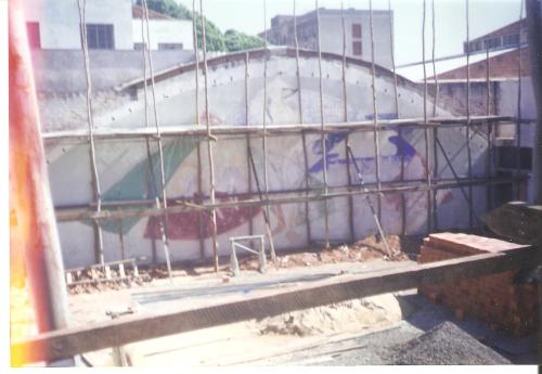 Quando da construção do novo salão de dança do Jacarezinho Clube foi convidada a artista plástica Elisa Setti Riedel. com laços familiares nesta cidade mas residente em São Paulo (fal.) para que fizesse um grande mural sintetizando toda a história de Jacarezinho. E isso foi feito e durante décadas o mural era uma referência para todos. Por volta dos anos 90 foi retirada a cobertura do salão de danças e o mural ficou exposto sofrendo a ação do tempo, o que permaneceu por alguns anos. Reconstruído o clube o painel ainda ali se encontra, de certa forma encoberto por tecidos mas sem que se faça a sua recuperação. Esta imagem, do final da década de 90, serve para comprovar como o descaso com as coisas históricas contribuem para destruir a memória de um lugar.