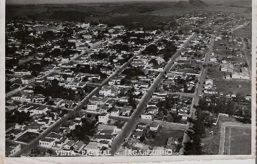 Conforme era costume nos anos 40 a 70, fazia-se fotos da cidade com a gravação de "vista parcial" uma vez que a fotografia aérea não conseguia abranger a cidade por inteira. Esta deve ser do início dos anos sessenta. À direita vê-se uma parte do Estádio Pedro Villela e no alto, também à direita, a Vila São Pedro, então ainda muito pequena. Hoje, os demais bairros surgiram após esta vila e já encostam no Morro das Três Marias que se vê nesta imagem.
