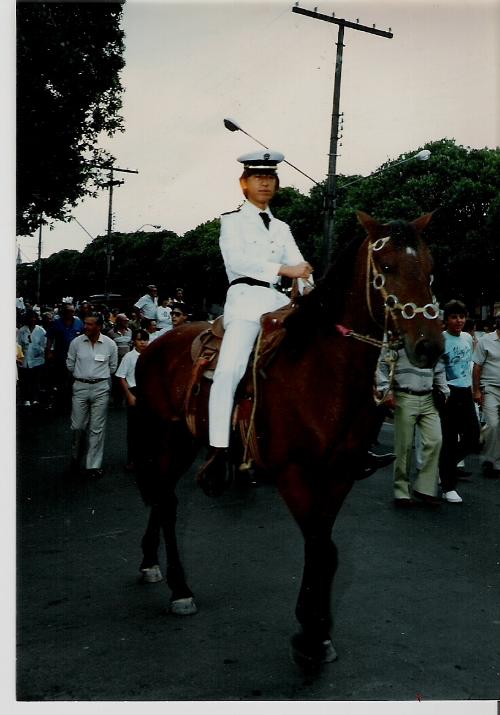 A imagem acima estampa uma réplica do primeiro uniforme do Colégio Cristo Rei, usado desde sua fundação (1935) até 1941. Essa réplica, como todas as demais, foi feita para o desfile comemorativo dos 50 anos do colégio, em 05 de outubro de 1985. O aluno estava montado em cavalo porque os chamados "capitães" dos pelotões assim desfilavam. O instrutor do colégio era o lendário Píndaro Camarinha, que implantou o uniforme militarizado, inicialmente da marinha e mais tarde em substituição ao primeiro, já em 1942, do exército.
