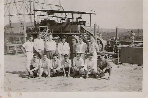 Já foi falado aqui que no bairro do Monjolinho, na década de 50, a Petrobras ferfurou poço para prospecção de petróleo em Jacarezinho. Depois de algum tempo, muito investimento e muito trabalho, o poço foi desativado ficando nos jacarezinhenses uma dúvida, se aqui teria realmente ou não petróleo. Caravanas da cidade e da região periodicamente se dirigiam ao local para conhecer o que estava sendo feito lá. Esta foto é do dia 12 de outubro de 1953 quando os alunos da 3ª série do antigo Curso Científico (hoje, Ensino Médio) do Colégio Cristo Rei visitaram o chamado Poço Pioneiro. São eles, da esquerda para a direita, em pé: Luiz Carlos, Raimundo, José Codato, Padre Romano Merten (professor que liderara a visita - fal.), João Ferreira, Antônio de Souza e José Rossi (que auxiliara no transporte dos alunos - fal.). Agachados: Celso, Américo (fal.), Edeval, Alcides (fal.), Francisco Carnielli (fal.) e Fernando Andretta. Observa-se à esquerda, nos fundos, parte da primeira torre de petróleo e quase ao centro o maquinário então utilizado.