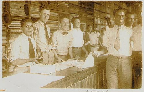 Dando prosseguimento à série de fotos sobre a Casa dos Lavradores, vê-se acima um grupo de funcionários e fregueses posando para o fotógrafo. Dentre os balconistas, da esquerda para a direita o 2º é Renée Conter e o 4º, Eduardo Conter, ambos filhos de um dos sócios da empresa, Artur Conter. A foto é de 1934 e algum tempo mais tarde trabalhou também como balconista Benedito Moreira que viria a comprar o prédio construindo no mesmo local sua residência (no sobrado ainda hoje existente) e a concessionária Chevrolet. (Acervo, Dr. Elmo Ferreira).