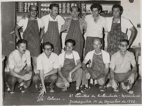 No dia 11 deste mês foi publicado uma foto do 5º Cursilho de Cristandade – Feminino (1973) e agora colocamos uma do 8º Cursilho de Cristandade – Masculino realizado em 14 de dezembro de 1972. O nome do movimento religioso católico “De Colores” é o título de uma canção espanhola muito popular à época e de letra simples e se tornou famosa entre os cursilhistas. Como se pode observar é o mesmo lugar e local, onde se realizavam os encontros dos cursilhos. A diferença é que os homens estavam um pouco adiantados na quantidade, deles eram o 8º (1972) e delas o 5º (1973). Os cozinheiros na foto, todos eles conhecidos da comunidade, alguns já não mais entre nós e outros mudaram para outras localidades.São eles, da esquerda para a direita, em pé: Nelson, Rudgero, Pedro, Romeu e Jorge. Agachados: José, Opero, Temístocles, Vitorino, Farás. (Acervo fotográfico: Ana Cândida da Silva, “Ana do Themístocles”; intermediação e texto de Vicente Estanislau Ribeiro, Vicentinho).