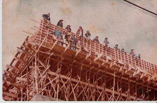 Essa foto retrata uma obra “modernosa” na palavra criada pelo eminente profº Dr. Celso e tem toda razão, apesar da construção do imóvel ser moderna, porém é horrorosa, se comparada com o bonito estilo do antigo prédio que foi demolido, o Banco do Estado do Paraná S/A. Infelizmente em seu lugar veio outro, conforme se vê na foto da década de 80, já em fase bem adiantada, vários operários no alto dão um descanso e aproveitam para se fotografar, guardando uma recordação que evidentemente não deixa de ser importante, pois afinal até o Banco estatal paranaense já não existe mais, em seu lugar hoje é o Banco Itaú. (Acervo fotográfico: José Ferreira Filho (Oliveirão), pedreiro da época, intermediação de Marcos Apº Ganzela; texto de Vicente Estanislau Ribeiro, Vicentinho).