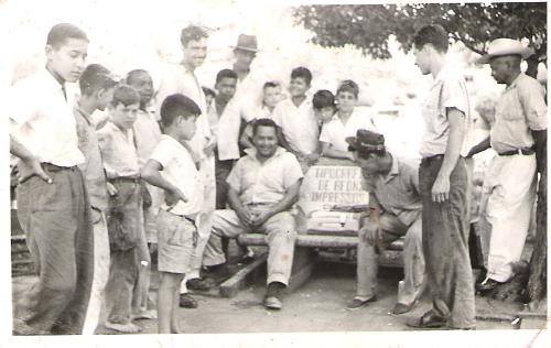 Em qualquer cidade, quase sempre o cartão de visita do lugar é a praça. É nela que se vê à primeira vista, como se encontra o zelo dos bens públicos pela administração municipal. Uma praça bem cuidada e conservada é algo positivo para quem chega ou por ela passa, o visitante, o pedestre e aqueles que nela desfrutam da sua sombra, do verde e do tempo que ali parece não passar. Essa foto da década de 60, na Praça Rui Barbosa mostra o encanto que tem esse passeio público, a magia de aglutinar crianças, adolescentes e adultos em volta de um de seus bancos, onde um cidadão sentado à direita, parece que tem nas mãos um baralho e com ele faz mágicas e o pessoal atento e curioso o observa. Hoje, lamentavelmente a famosa e tradicional praça já não é mais a mesma, está descaracterizada com uma recente construção, chamado de banheiro público que na verdade parece mais um “caixotão”, enfeiando e tirando toda a sua beleza original. (Acervo fotográfico: Rita Maria Bueno da Silva; intermediação e texto de Vicente Estanislau Ribeiro, Vicentinho).