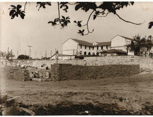 O Asilo São Vicente de Paulo, que funcionou durante muitos anos em outro prédio, um bonito casarão de madeira em foto aqui já reproduzido, preparava-se na década de 50 para a edificação de sua nova sede com as obras de seus alicerces (na época não se fazia as fundações, como hoje). A foto é daquele tempo, vendo-se os alicerces já erguidos, pedra sobre pedra, tendo como pano de fundo o Colégio Imaculada Conceição, ainda inacabado. (Acervo fotográfico do próprio Asilo, intermediação de Vicente Estanislau Ribeiro, Vicentinho).