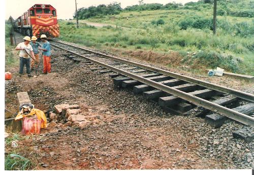 Há já muitos anos um dos fatores do progresso e desenvolvimento do norte pioneiro, a estrada de ferro, se encontra desativada. E pior: as estações ferroviárias estão abandonadas e entregues ao vandalismo que destroi importante patrimônio histórico da região. Não é preciso ir longe, basta chegar até a estação de Jacarezinho para que se verifique o estado lastimável em que ela se encontra. Na foto feita nas proximidades da cidade, operários fazem a manutenção dos dormentes enquanto o trem chega resfolegando... A foto é de 1989.
