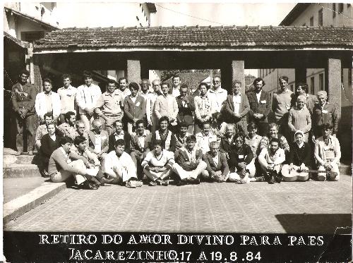 Nesse mês de agosto, a foto registra os 25 anos do Retiro do Amor Divino para Pais, realizado nas dependências do Lar São Vicente de Paulo. Esse encontro dos pais denominado de “Amor Divino” advém da Congregação católica das filhas (freiras) do Amor Divino, fundada pela madre Francisca Lechner em 21 de novembro de 1868 em Viena, Áustria. Sua abrangência é internacional e está em 18 países. As primeiras irmãs chegaram ao nordeste do Brasil em 1915. O lema da congregação é: “Tudo por de Deus, pelos Pobres e pela nossa Congregação”. Na foto se vê as irmãs na extremidade sentadas, em pé do lado direito, o padre Zakir e vários pais conhecidos da comunidade. (Acervo fotográfico do participante: Ari Lopes Pinheiro; intermediação e texto de Vicente Estanislau Ribeiro, Vicentinho).