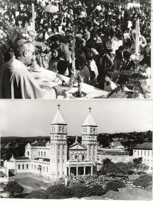 No dia 30 de maio de 1984 foi celebrada em Jacarezinho uma Missa pela Pátria, que reuniu os fiéis católicos da cidade. A Missa teve lugar na frente da Catedral e foi celebrada pelo Bispo D. Conrado Walter (foto superior). Verdadeira multidão compareceu naquele evento religioso. A foto inferior mostra parte dos presentes, à frente da Catedral.